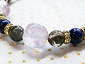 ラベンダーアメジストはやや柔らかい色合いで、霊的なパワーが強く、心を静めてくれます。そしてガーデン水晶は水晶の内部に他の鉱物が入り込み、それがまるで景色や、庭園のように見えることからその名で呼ばれます。一つの石のなかにそれぞれ違った世界を持ち、その景色とエネルギーは身体の健やかさに力を与えてくれます。そしてラピスラズリの幸運を寄せる力が心身の健康を強くサポートしてくれます。 |