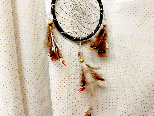 ドリームキャッチャーとは、アメリカインディアンに伝わる、輪を基にした手作りの装飾品です。 |