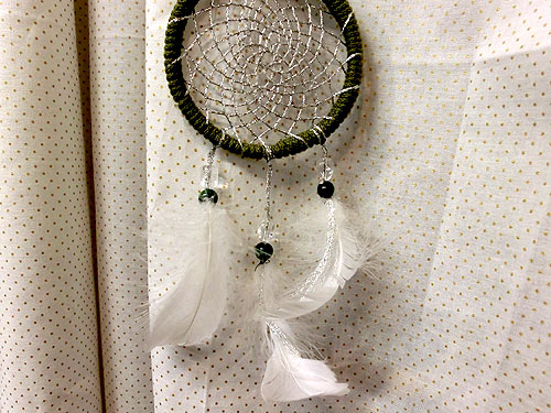 ドリームキャッチャーとは、アメリカインディアンに伝わる、輪を基にした手作りの装飾品です。 |