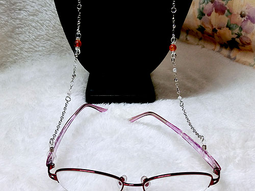 オフィスでもさりげなくオシャレが出来るメガネのストラップです。シンプルなチェーンを使用しているので、華美にならず、家やオフィスでも使えます。 |